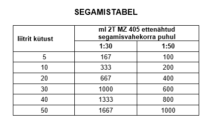• Õli ja kütuse segamisvahekorra määrab sõidukitootja, enamjaolt on see 1:50.
