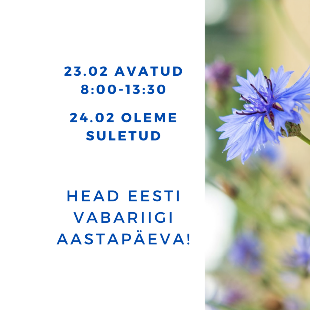 Kullervedu toimub 23. veebruaril Tallinnas kuni kella 12ni, kui tellimus on esitatud eelneval tööpäeval. Ka pakiautomaati toimetame tellimusi 23. veebruaril kuni kella 12ni.